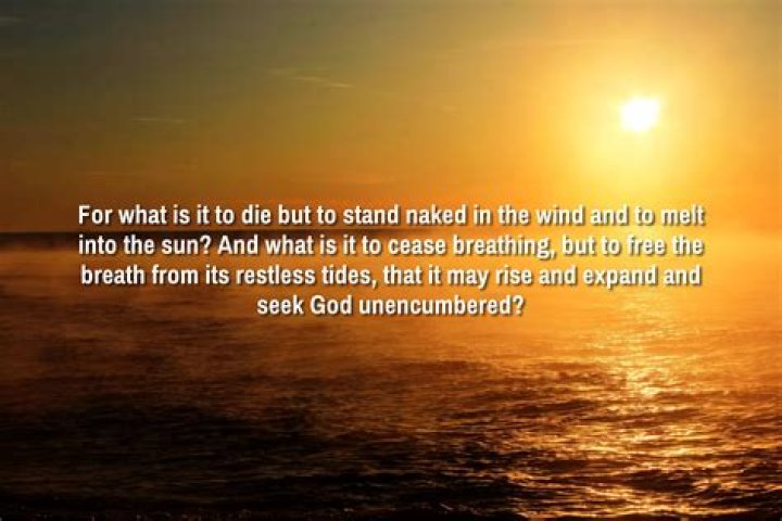 For what is it to die but to stand naked in the wind and to melt into the sun? And what is it to cease breathing, but to free the breath from its restless tides, that it may rise and expand and seek God unencumbered? Only when you drink from the river of silence shall you indeed sing.