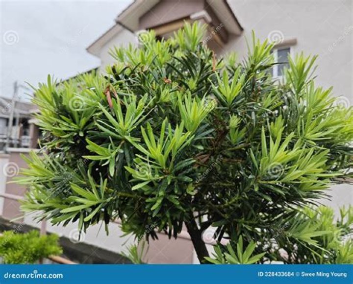 The buddhist pine is an evergreen tree or shrub which naturally grows in tropical mountain regions and can become up to 40 m tall. It has dark green narrow lanceolate leaves which resemble the needles of the yew.