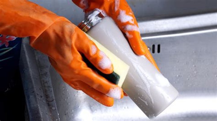 - hot water + soap + bottle brush scrub.