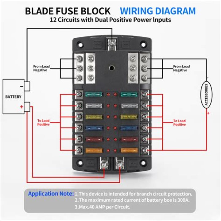 A fuse block provides multiple fuse circuits, usually 2 to 12 spaces. These circuits can be independent, with each having its own individual input and output wires, or ganged, with power shared across all circuits.
