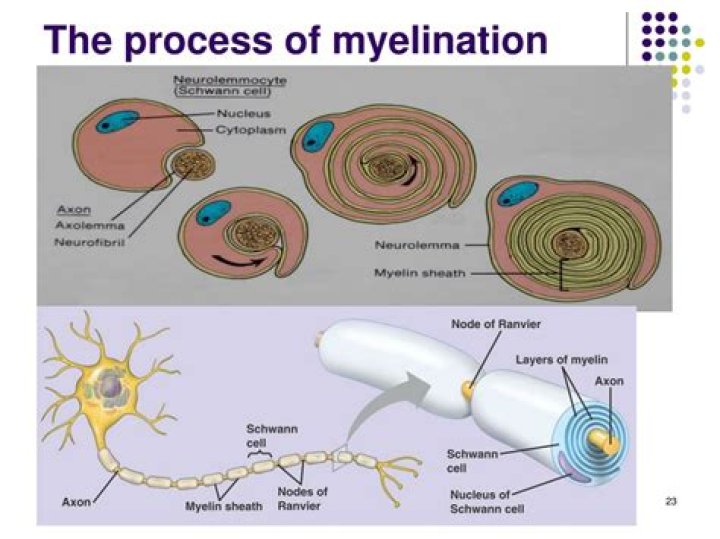 Myelin is an insulating layer, or sheath that forms around nerves, including those in the brain and spinal cord. … This myelin sheath allows electrical impulses to transmit quickly and efficiently along the nerve cells. If myelin is damaged, these impulses slow down. This can cause diseases such as multiple sclerosis.Where does myelination first occur in the brain?