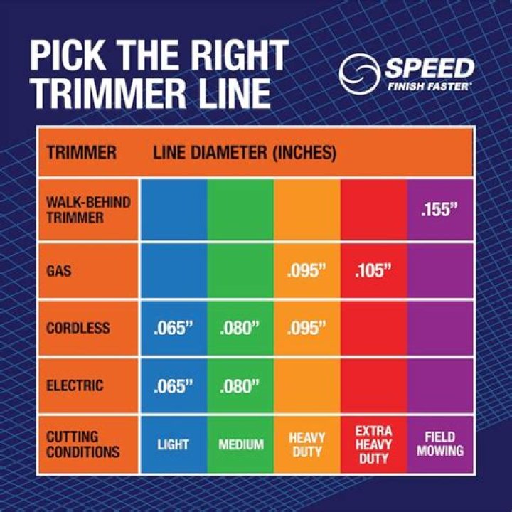 String Trimmer Line Thickness This probably comes as no surprise to anyone, but the general rule with string trimmer line is that the tougher the application, the thicker the line needs to be. A larger diameter will increase the power and durability of the line, which leads to less breakage and wear-out.