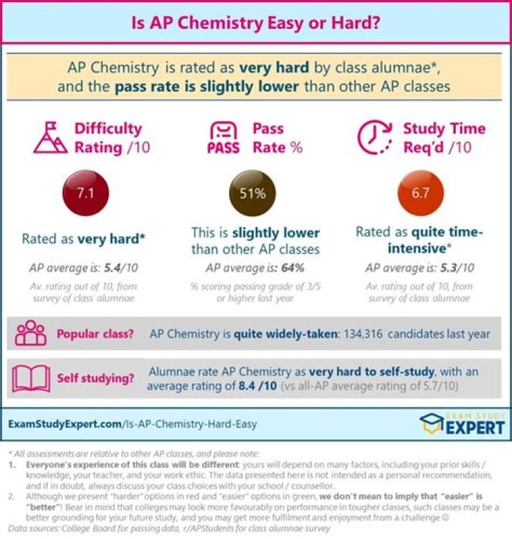 Most science classes have a reputation for being difficult, and AP® Chemistry is no exception. … The simple truth is that AP® Chemistry is a difficult class, but if you know what you’re getting yourself into and plan accordingly, it is possible to pass the AP® Chemistry exam with a high score.