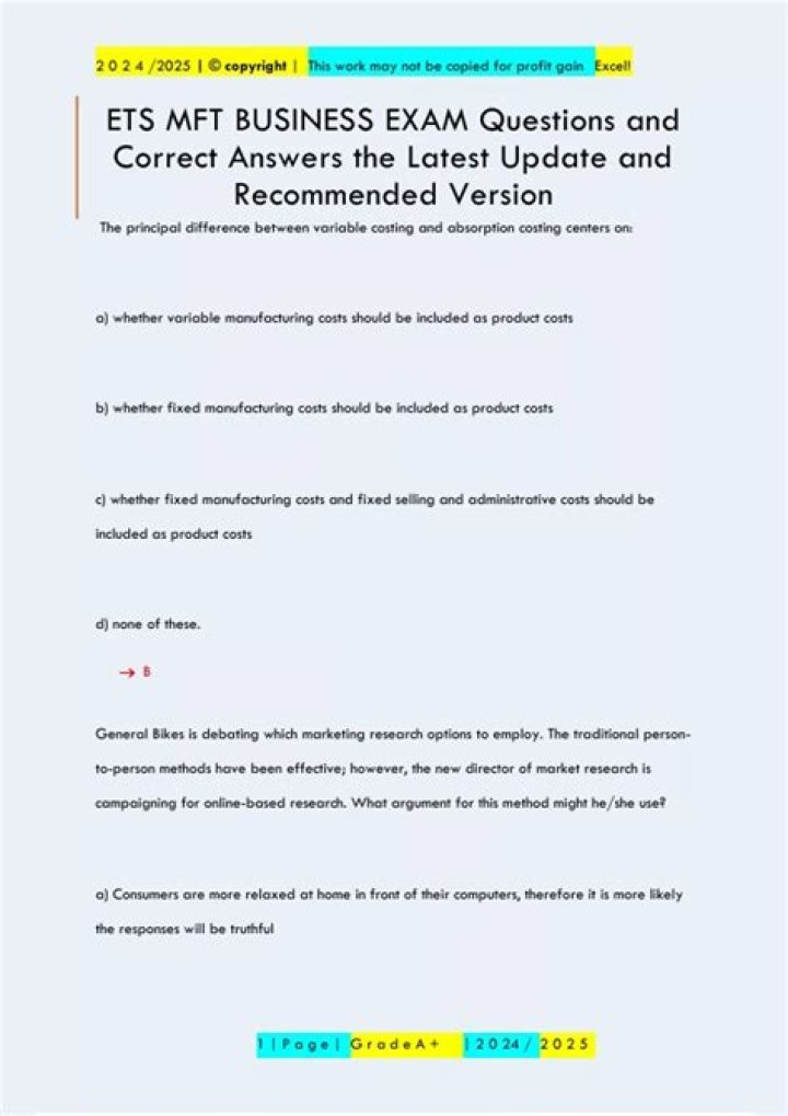 The ETS ® Major Field Test for the Bachelor’s Degree in Business contains 120 multiple-choice questions designed to measure a student’s subject knowledge and the ability to apply facts, concepts, theories and analytical methods.
