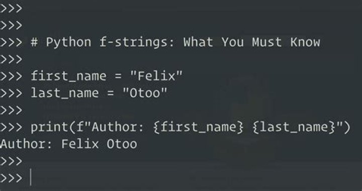 F-strings provide a way to embed expressions inside string literals for formatting. An f-string is a literal string, prefixed with ‘f’, which contains expressions inside braces. An expression is evaluated at run time, not a constant value, so f-strings are faster than %-formatting and str.