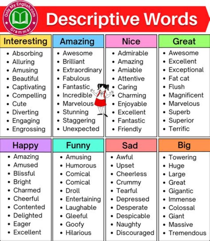 Descriptive words are help visualize, describe, define, or explain information about people, places, things, situations, or actions. … Descriptive words could also include adverbs, or words that help to describe action.