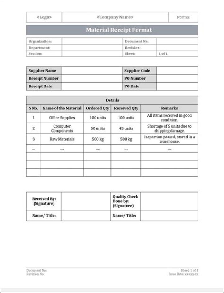 - Receipt of Materials: …