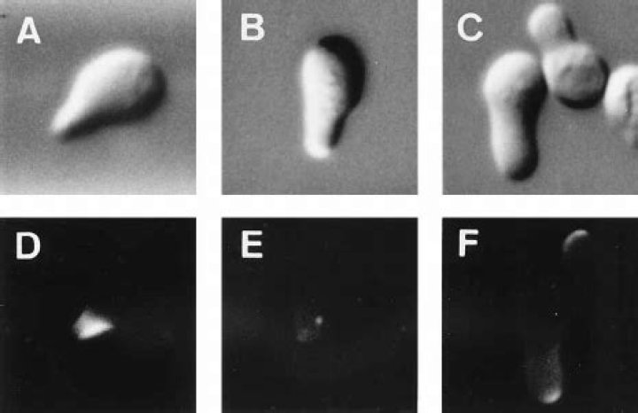 Sometimes, yeast cells reproduce sexually, by mating. The mating process involves one cell of each sex joining together, then mixing their DNA and splitting apart again. To do this, the cells each have to produce a nodule that they can join together, called a shmoo.