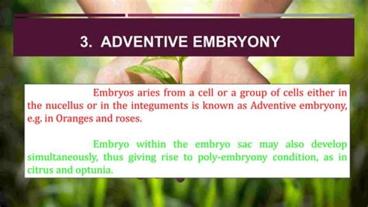 Adventive embryony is the process of the embryonic development without fertilization. The embryo does not develops from the reproductive cells or the gametes. They may develop from the nucellus or integumentary cells.