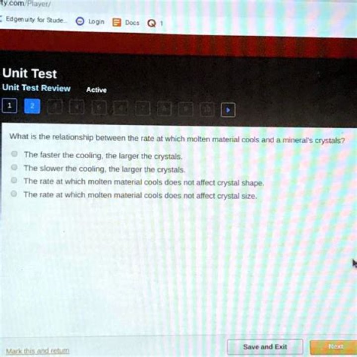 What is the relationship between the rate at which molten material cools and a mineral’s crystals? The slower the cooling, the larger the crystals.
