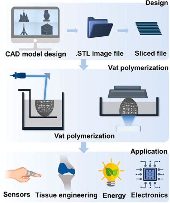 Vat polymerization is a type of additive manufacturing technique that offers an attractive strategy for fabricating 3D objects due to its high resolution, versatility of feedstock materials, and high dimensional accuracy.