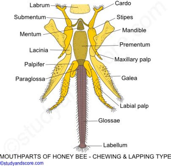 Based on this model, insect’s mouthparts are made of 5 main structures: labrum, mandibles, maxillae, hypopharynx and labium. … On the contrary, labrum and hypopharynx aren’t true appendages because of their non-metameric origin, although they are also considered buccal appendages due to their essential role in feeding.