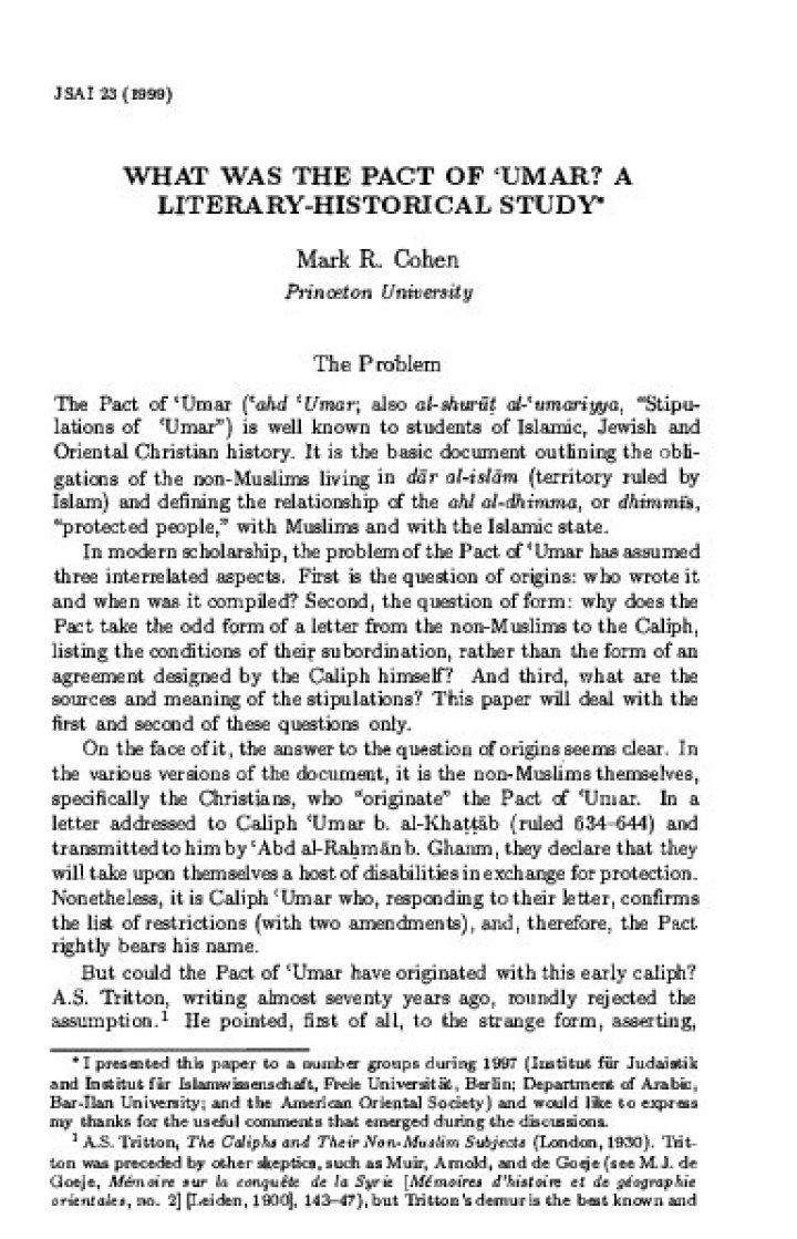 The Pact was a treaty between Muslims and the Christians. This document explains why Islam spread so quickly because they kept their religion and what they believed in, they defended their lands so no one would conquer it then slowly Islam became bigger and bigger.