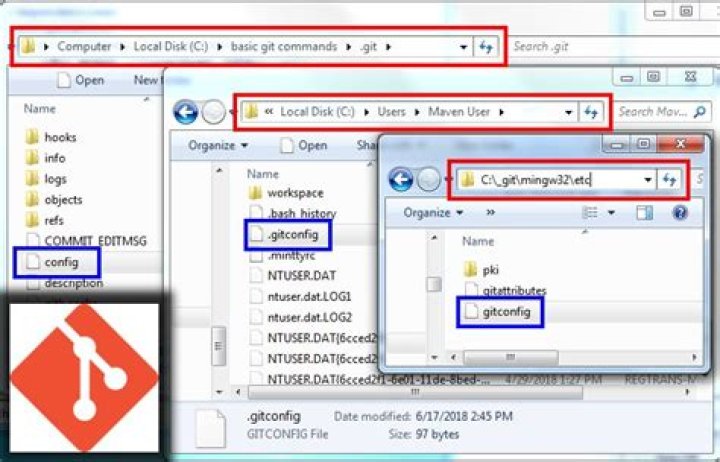 gitconfig located in the user’s home folder (C:\Users\git user) Local Git configuration: File named config in the . git folder of the local repo.