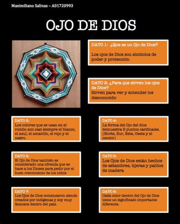 Ojo de Dios is Spanish for the eye of God. It is a weaving of yarn and wood and has been used as an ancient, contemplative practice that is a combination of Hispanic and Indigenous Peoples in the Americas cultures. The four ends of the sticks represent the four elements- fire, water, earth, and wind.Does God's eye exist?