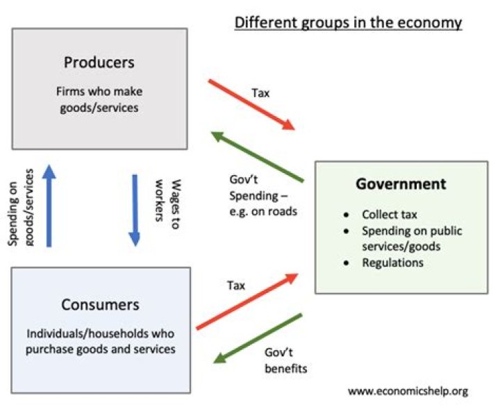 Explain the role of the main economic groups: consumers, producers and the government.