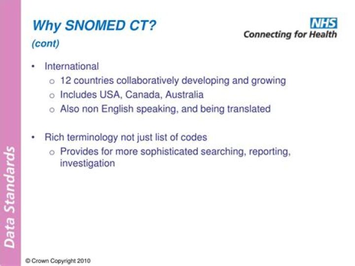 All NHS healthcare providers in England must now use SNOMED CT for capturing clinical terms within electronic patient record systems.